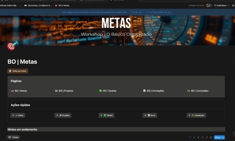 Para facilitar a organização de Metas, Projetos, Tarefas, Anotações e Conteúdos, preparamos um template de Notion com tudo isso integrado. Registra e acompanhe tudo num só lugar.